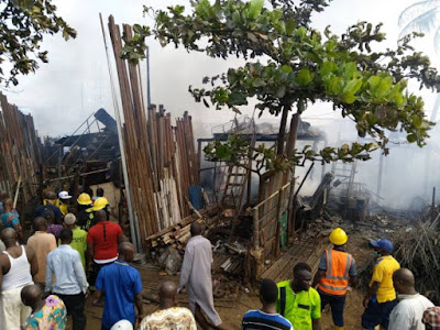 A massive fire outbreak has razed 15 shops at Owode-Onirin Market, Lagos. Goods worth millions of naira were destroyed as traders are left to groan in pains and agony over the loss of their properties.