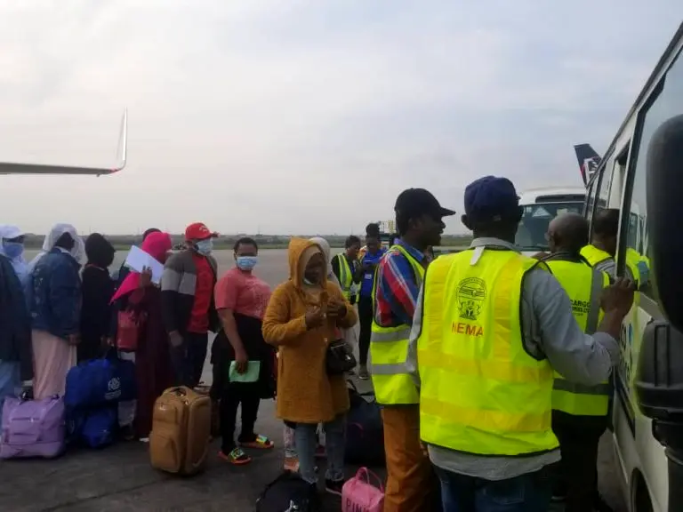 The National Emergency Management Agency, NEMA, received the Returnees on arrival at the Cargo Wing of the Murtala Muhammad International Airport, Ikeja.