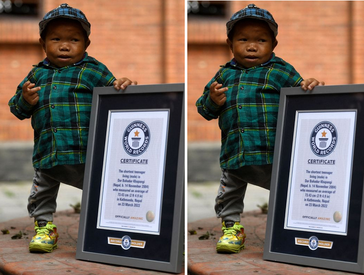 A Nepalese man has set the record for the world’s shortest living male teenager at a height of 73.43cm (2ft 4.9in).