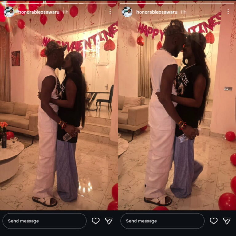 The display of affection follows a grand Valentine’s Day surprise orchestrated by 2Baba, who filled their room with balloons, flowers, and other romantic gestures, leaving Natasha overwhelmed with joy.