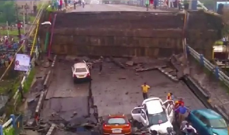 A bridge has collapsed in Kolkata in India leaving five people killed and 15 injured. A picture show several cars crushed under the structure.