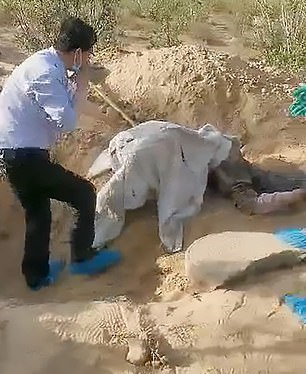 Officials soon located the burial pit and started digging the tomb after hearing someone screaming for help.