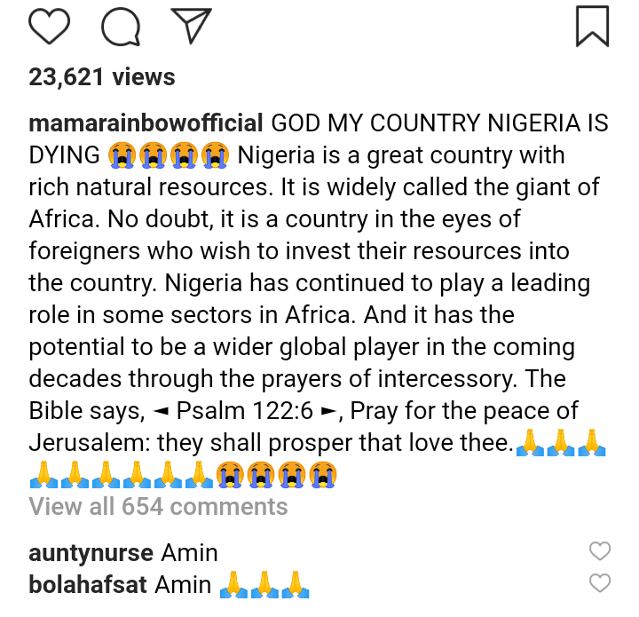Nollywood veteran actress, Mama Rainbow has left her house for a beach to pray for Nigeria. Mama Rainbow while praying at the beach called on God to please help Nigeria and Nigerians and help us out of what the country is facing! Watch the video below…