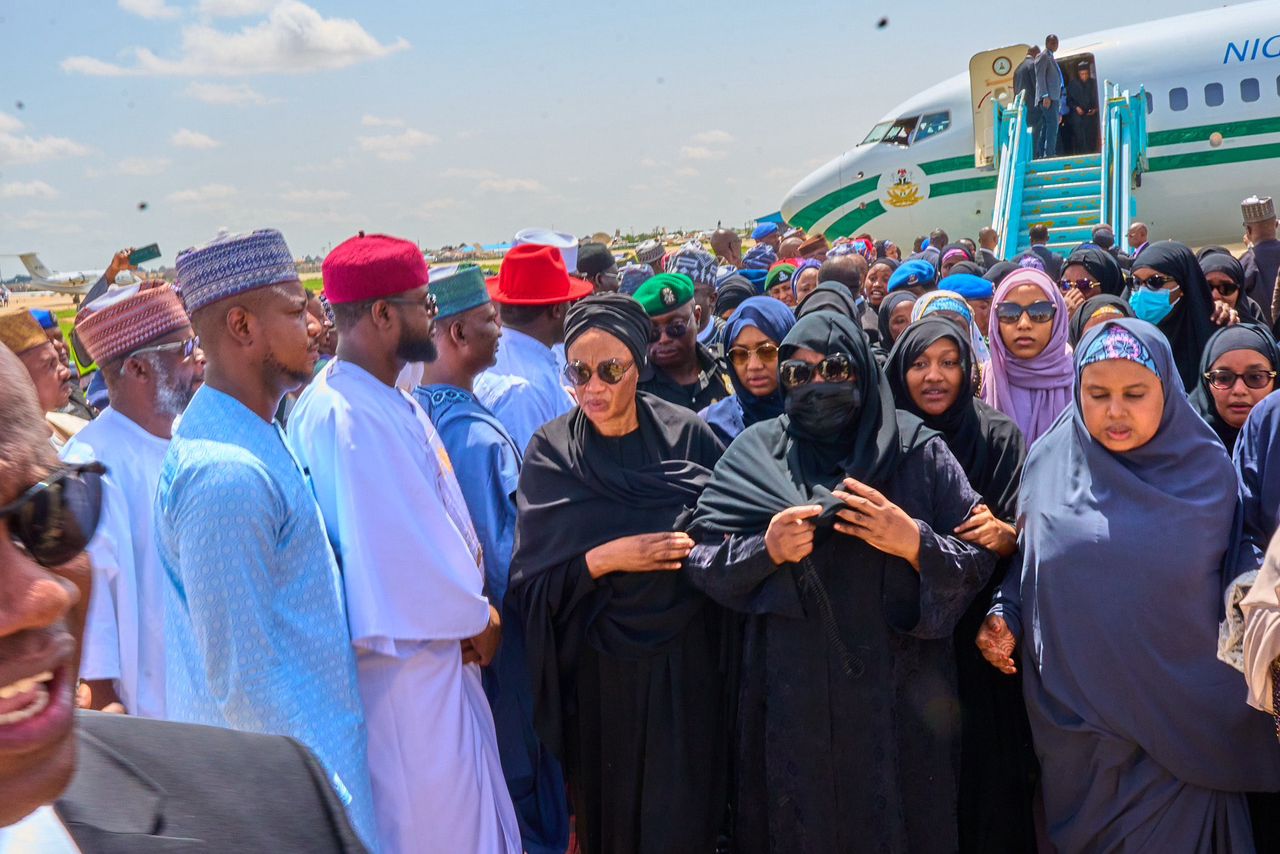 Ex-First Lady, Aisha Buhari, Zahra Buhari Indimi and other family members were at the airport today to receive the body of late Nigerian leader, Muhammadu Buhari