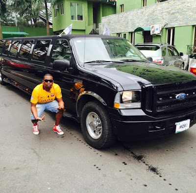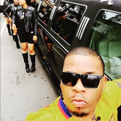 this afternoon in a limo with some pretty chics to show love to a man he named