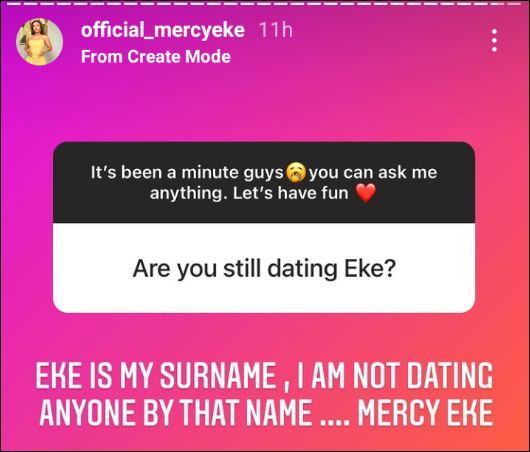 Eke the winner of BBN season 4, revealed this during an interactive session with her Instagram followers.