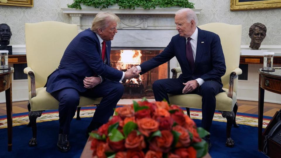 “I look forward to having a smooth transition and do everything we can to make sure you are accommodated, what you need. We’re going to get a chance to talk about some of that today,” Biden said to Trump, in front of a roaring fireplace. “Welcome back.”