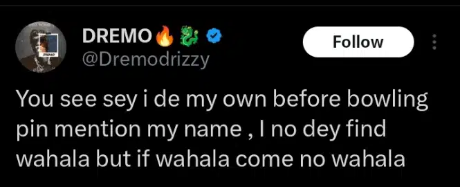 Nigerian singer BNXN (formerly known as Buju) sparked a reaction from rapper Dremo with a comment on the microblogging platform X