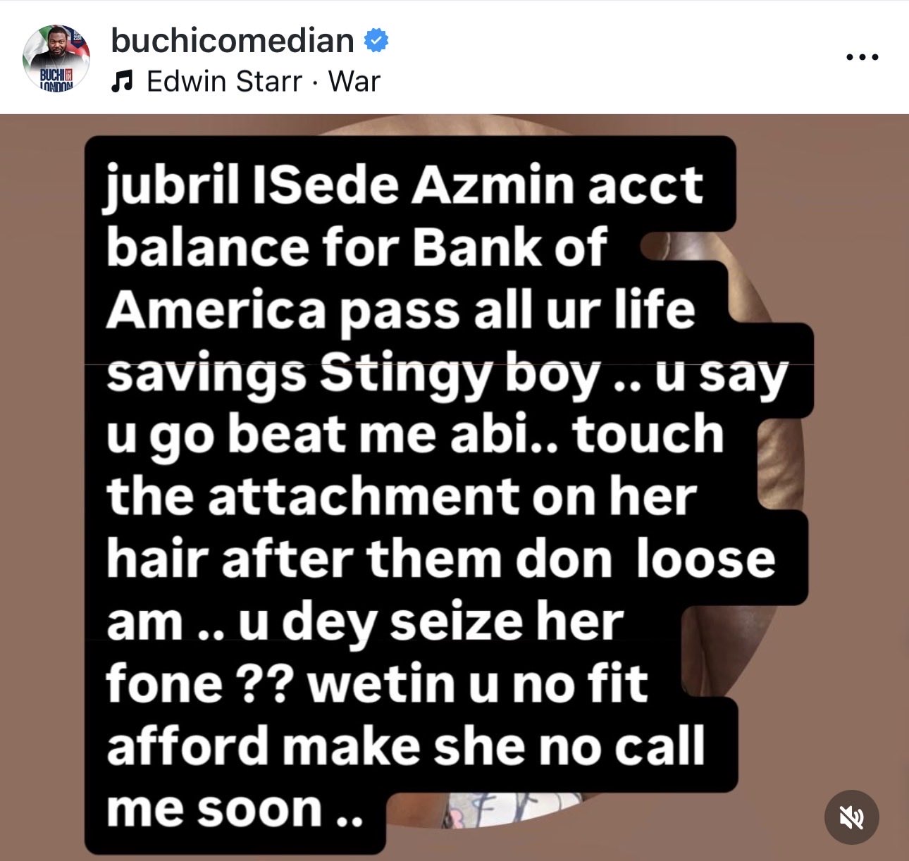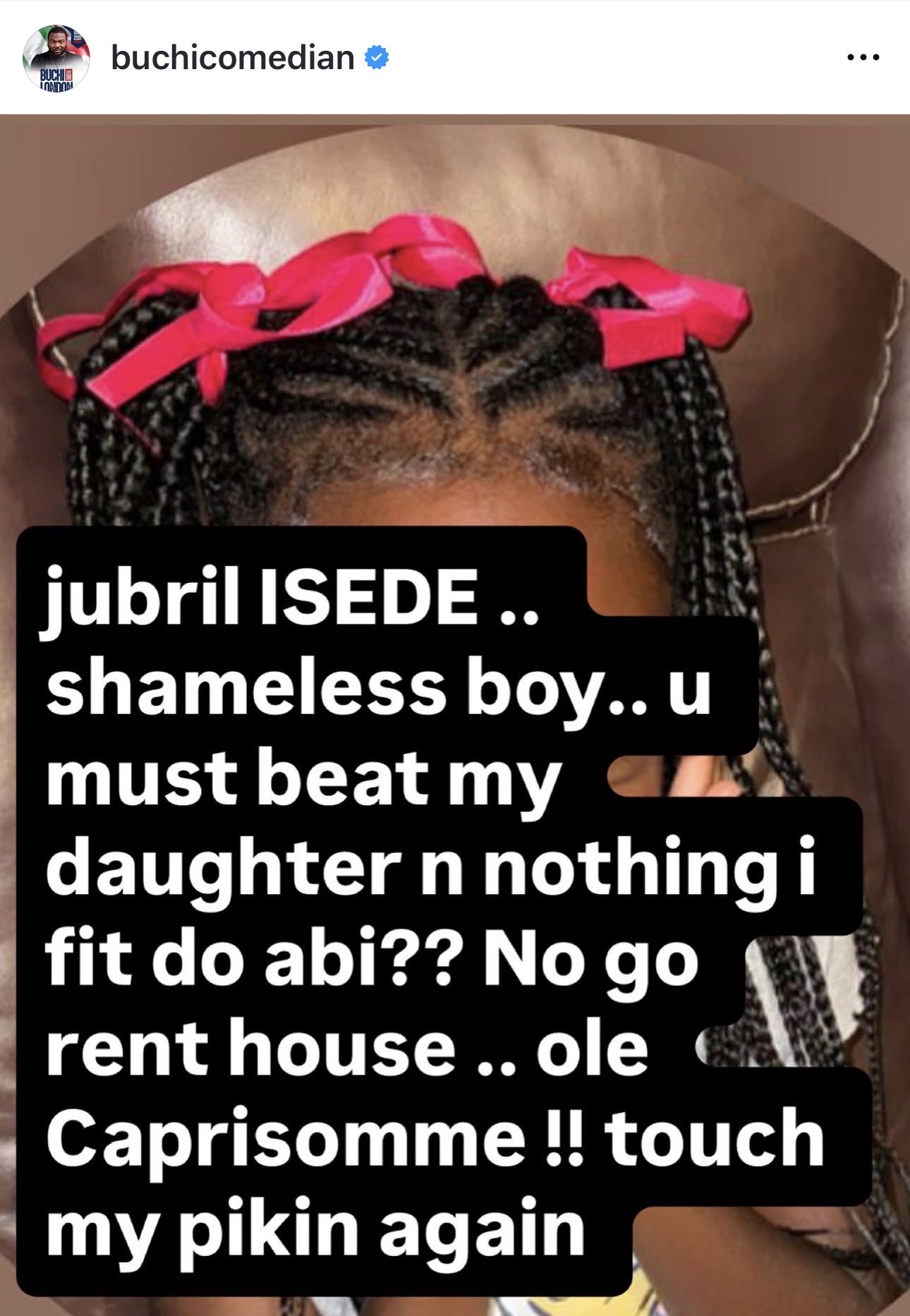 Comedian, Buchi has publicly called out his former brother-in-law over allegations of assault on his daughter, Azmin, sparking fresh controversy around his family dispute