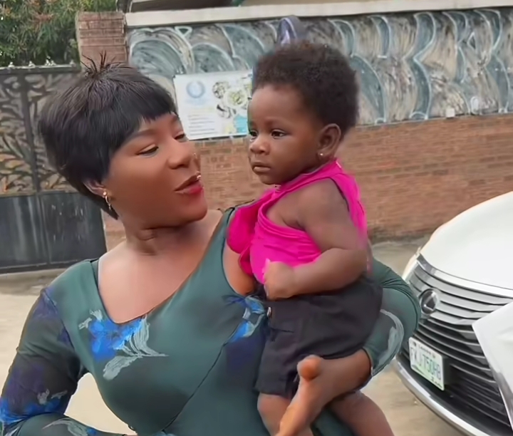 Nollywood star, Destiny Etiko has finally met with the baby who went viral for looking just like her