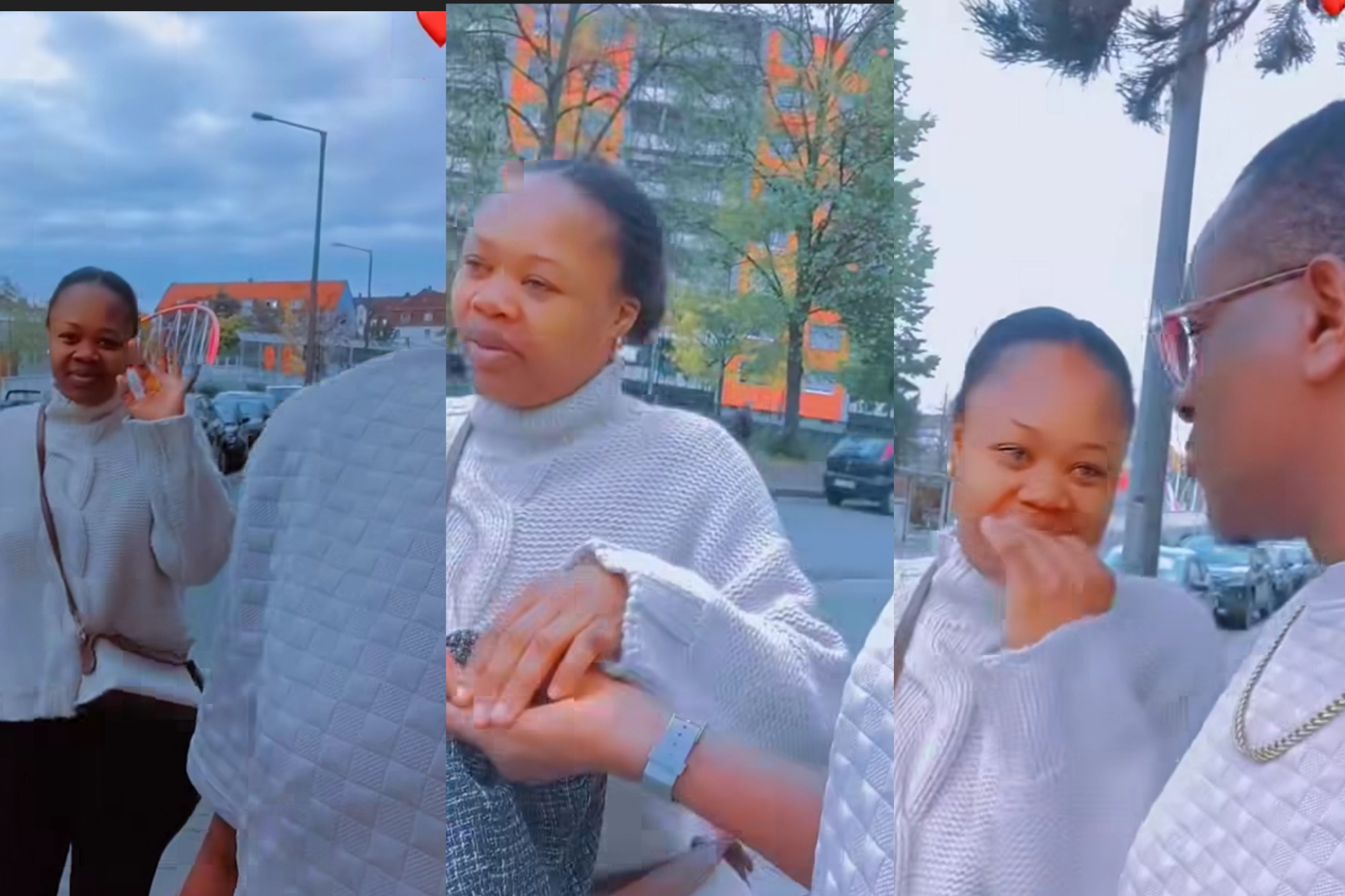 In the short clip, Emeka films his wife as she walks toward their car to pick something up, capturing the moment from behind.