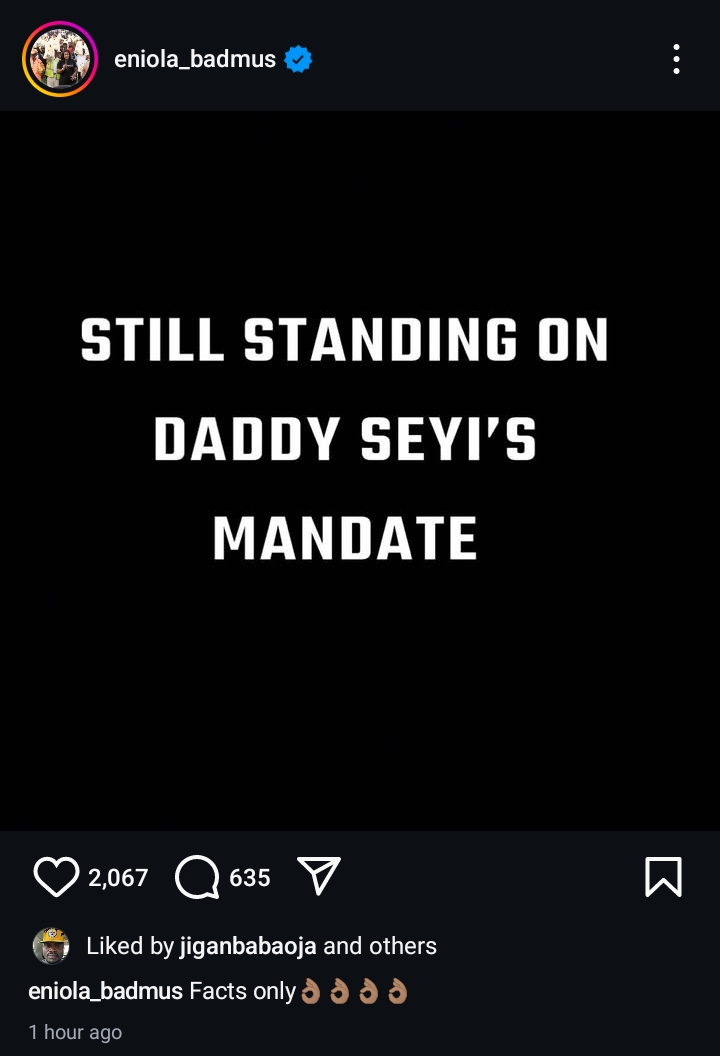 “STILL STANDING ON DADDY SEYI’S MANDATE. Facts only.”