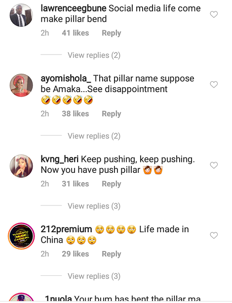 Fans have blasted Nollywood actress, Mercy Aigbe for photo-shopping a photo she posted on her Instagram page, It seems it’s to make her hips look bigger as they actually are in the photo, but in the process a pillar behind her was photoshopped and fans have this to say.