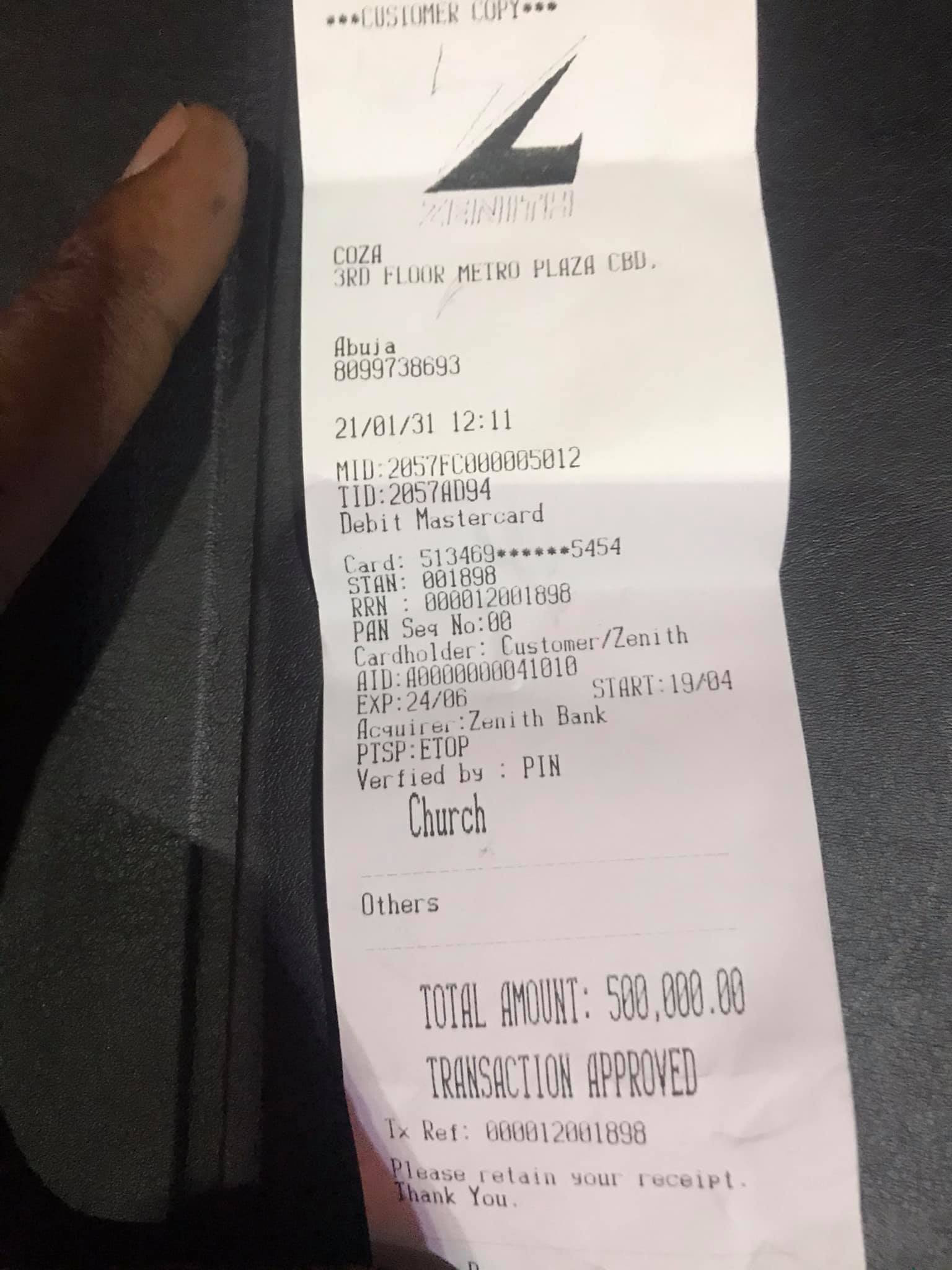 Isaac Fayose, brother of former Governor of Ekiti state, Ayodele Fayose has shared a receipt of the ‘seed he sowed’ in Commonwealth of Zion Assembly (COZA), a Church founded by Pastor Biodun Fatoyinbo.