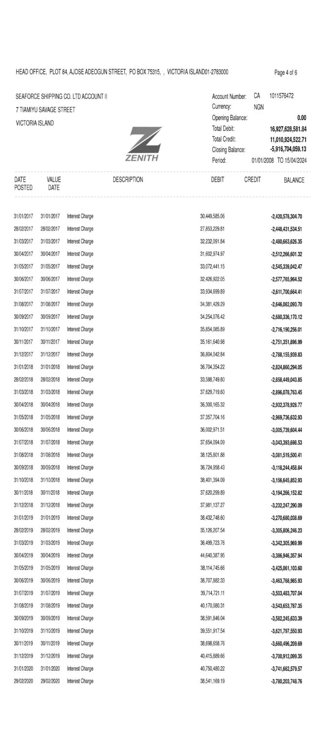 Although Otedola said Seaforce never applied for nor took a loan from Zenith Bank, unauthorised trading running into billions of naira continued on the account.