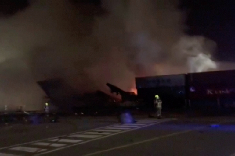 The blaze sent up giant orange flames on a vessel at the crucial Jebel Ali Port, the busiest in the Middle East, which sits on the eastern side of the Arabian Peninsula – but authorities said the situation is under control.