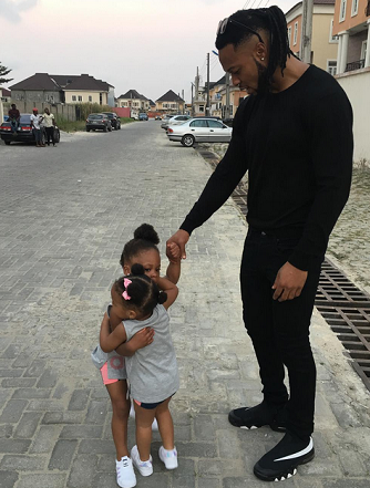 The girls from different moms (ex-beauty queens) hugged each other as dad took them for a stroll.