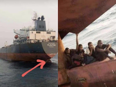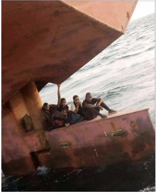 The middle-aged stowaways were caught hiding at the rudder of the ship.