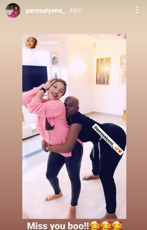 Here is a fun photo of Nollywood actress, Tonto Dikeh and Tuface’s babymama, Pero Adeniyi.