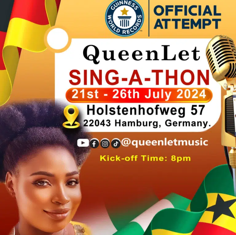 Queenlet, a Ghanaian singer based in Germany, has announced her bid to break a new Guinness World Record (GWR) for the longest singing marathon a person