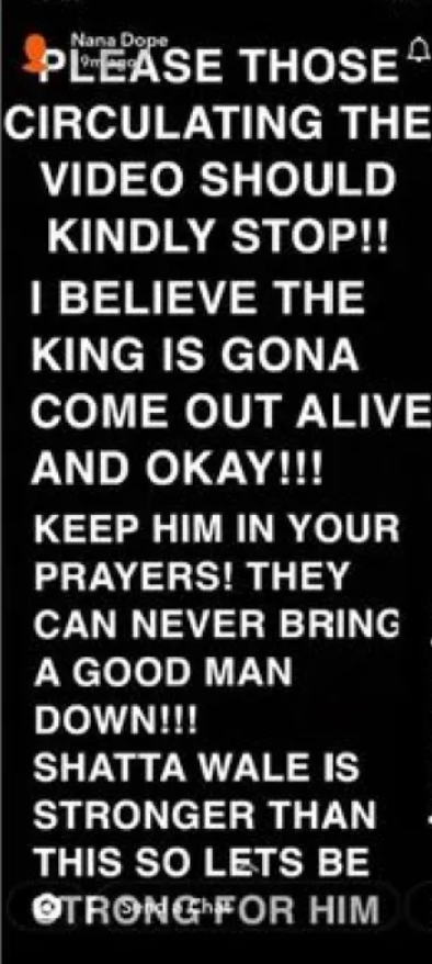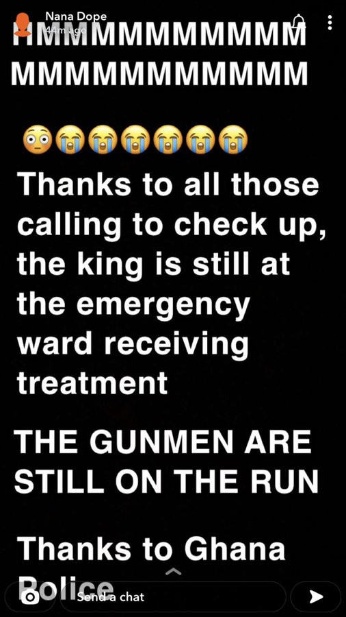 Dope posted via his social media account, “Thanks to all those calling to check up. The king is still at the emergency ward receiving treatment. The gunmen are still on the run. Thanks to Ghana police.”