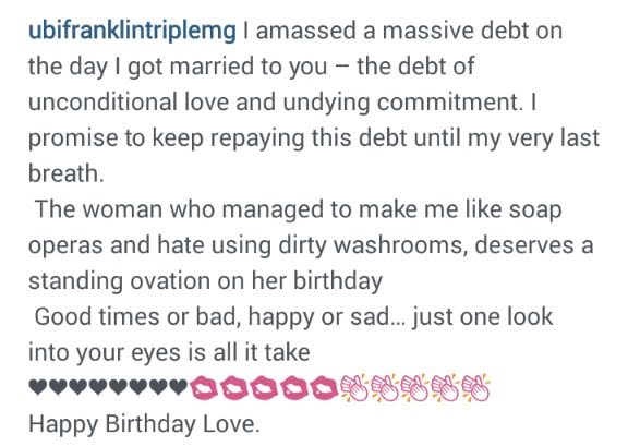 other….Ubi posted this loving words to his wife, Lilian Esoro as she