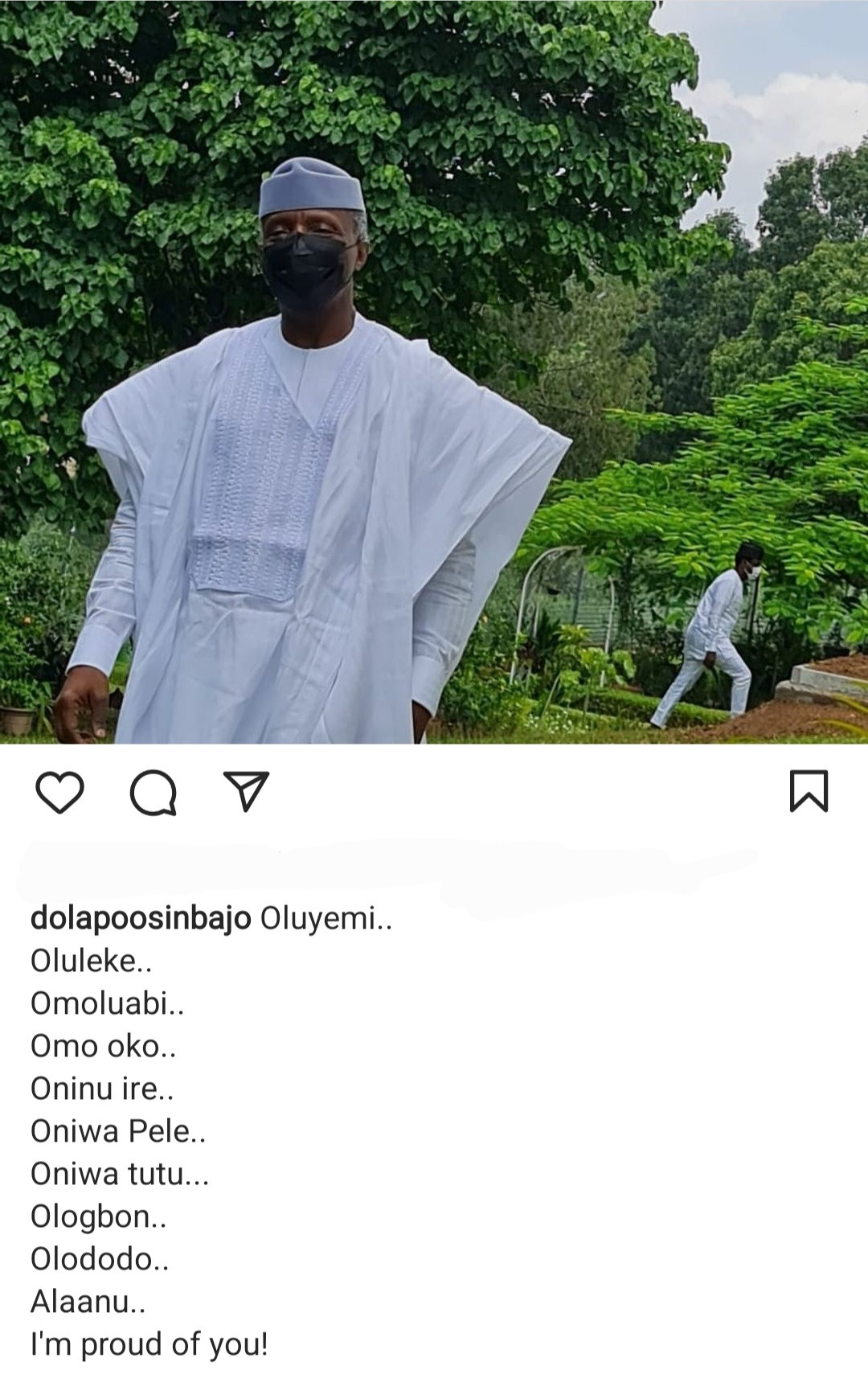 The wife of the Vice President of Nigeria has hailed her husband, saying she is proud of him.