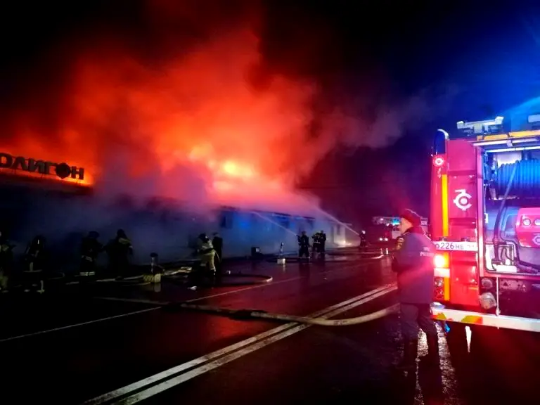 Video shared by investigators showed firefighters spraying water on the smouldering, collapsed roof of the building. According to rescuers, the fire covered an area of 3,500 square metres and took about five hours to put out.