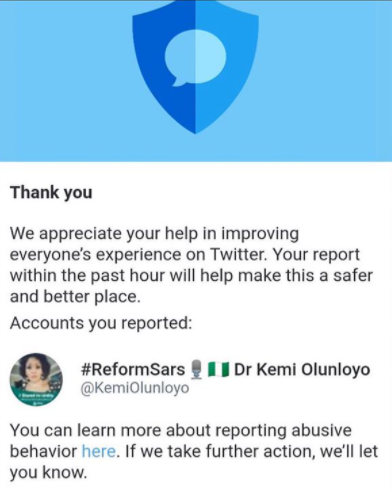 Kemi Olunloyo’s Twitter account has been disabled.