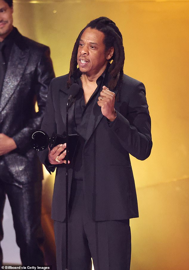 ‘I don’t want to embarrass this young lady, but she has more Grammys than everyone and never won Album of the Year,’ Jay-Z said. ‘So even by your own metrics, that doesn’t work. Think about that. The most Grammys; never won Album of the Year. That doesn’t work.’