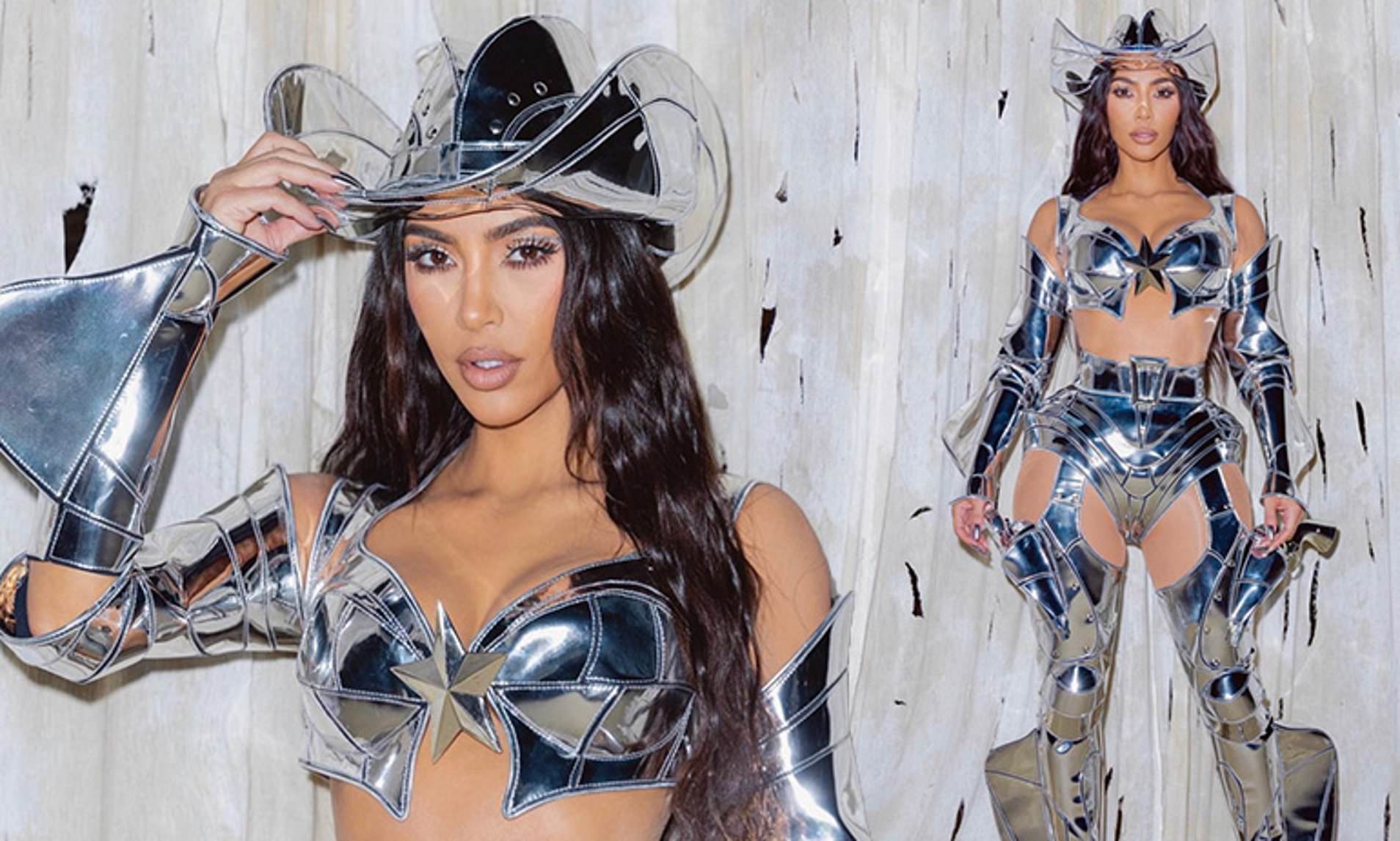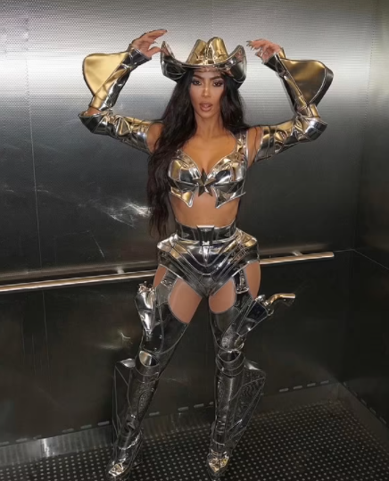 Kim Kardashian WOWS in metallic ‘CowBot’ costume