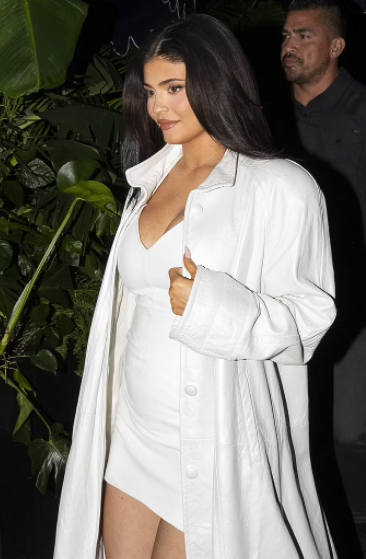 Kylie Jenner debuts her baby bump in plunging white mini dress