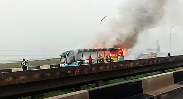 The incident which occurred around 8am also drew the anger of hoodlums who vandalised the BRT bus and set it ablaze.