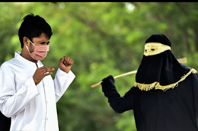 Usually large crowds of hundreds of people watch floggings but fewer people were there on Friday because of the coronavirus pandemic.