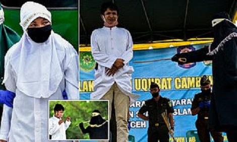 The two lovers were flogged in the province Aceh, the only Muslim-majority region in the country that imposes extreme Islamic law, with a rattan cane outside a mosque on the western tip of Sumatra.