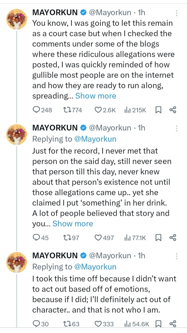 Mayorkun also expressed frustration with the gullibility of internet users who quickly spread negative news without seeking clarity.