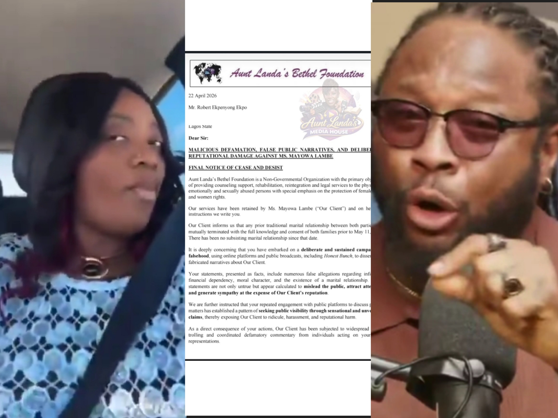 The ongoing rift between Mayowa Lambe and her former husband, Roby Ekpo, has taken a legal turn following the controversy stirred by his appearance on The Honest Bunch Podcast