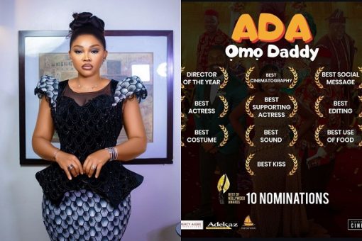 Mercy Aigbe, has bagged 10 nominations with her debut cinematic movie “Ada Omo Daddy” in the 2024 Best of Nollywood Awards
