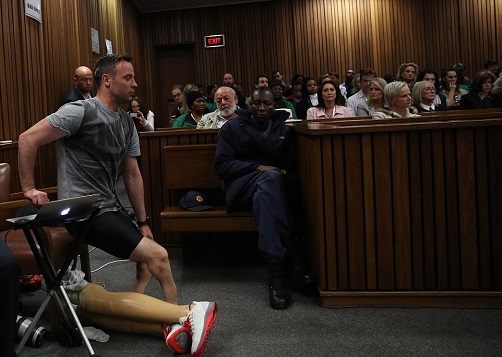 He took off his prosthetic limbs yesterday in the court room in a desperate plea for leniency in a hearing that will determine his sentence for murdering his girlfriend Reeva Steenkamp. More photos below..