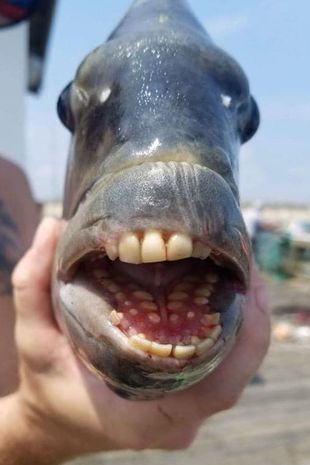 It was later identified as a sheepshead fish, which has uncanny gnashers – and has now gone viral online.
