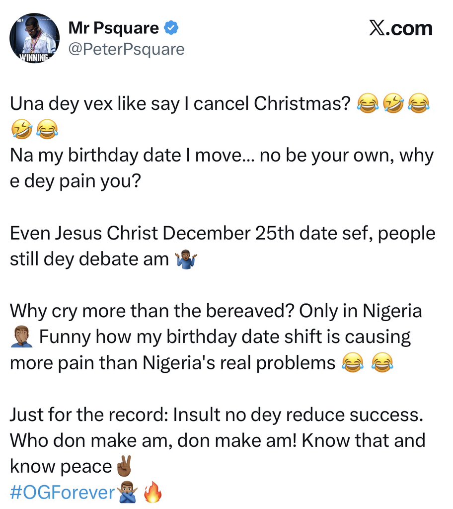 Peter Okoye has reacted to the backlash that followed his decision to change his birthday date, dismissing the criticism as unnecessary and exaggerated