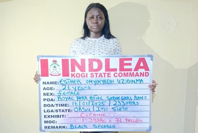 A spokesman of the agency, Femi Babafemi said “Esther was scheduled to return to Delhi, India from MAKIA Kano on Qatar Airways flight 1432 on Friday 17th January 2025 but was arrested in her room at 11:30 pm on Thursday 16th January at Royal Park Hotel Sabon Garin Kano, while awaiting the cocaine consignment she was to ingest before her flight the following morning’.