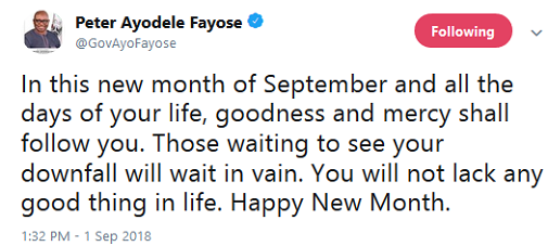 Well a prayer for us all from the outgoing Governor of Ekiti State.