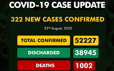 “On the 23rd of August 2020, 322 new confirmed cases and 5 deaths were recorded in Nigeria.