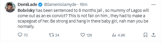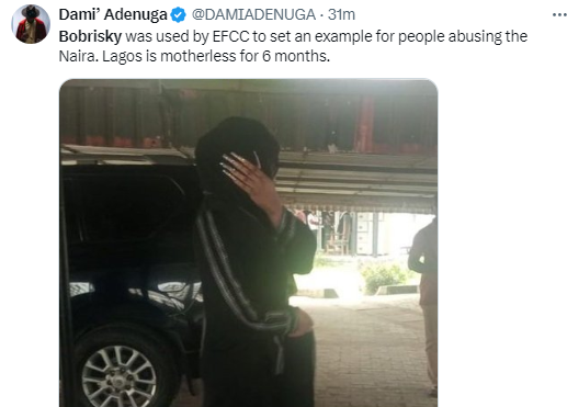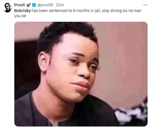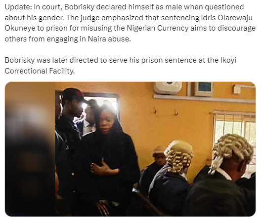 Recall the cross dresser was jailed this morning for six months for abusing the Naira.
