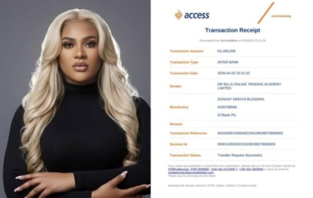 A male friend gifted her 1 million naira for dinner, which she posted as a screenshot of the credit alert. “Million naira for dinner. Thank you so much, @dr_bills. May your pocket never run dry,” she wrote.