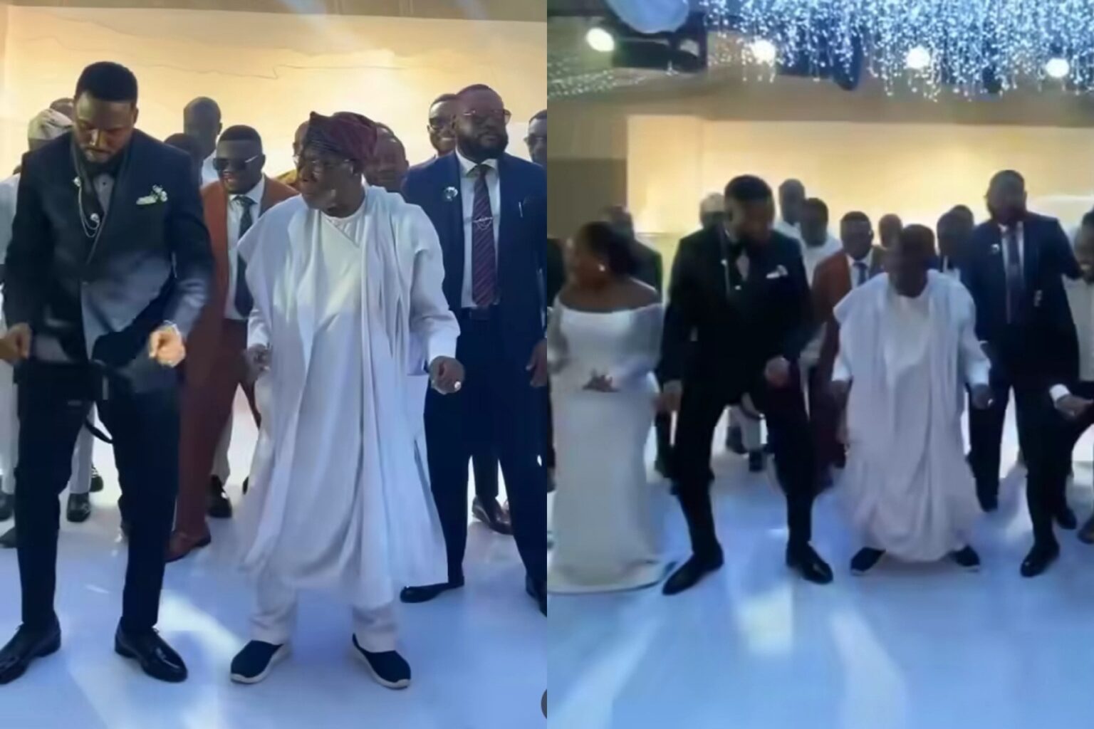 Former President of Nigeria Olusegun Obasanjo has caused a stir online as he shows off his energetic dance step with newlyweds