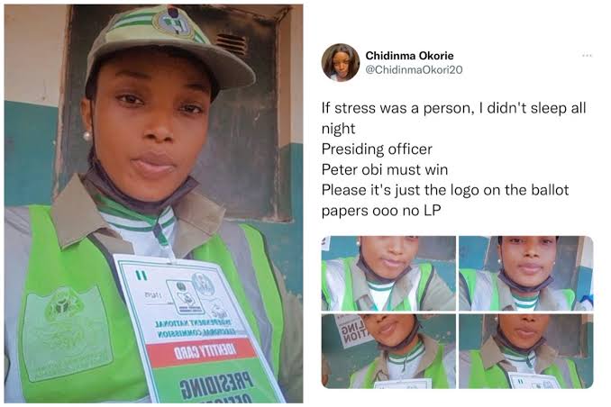 A Twitter user, Chidinma Okorie, who is a Presiding Officer with the Independent National Electoral Commission in the ongoing presidential and National Assembly elections has declared that the Labour Party presidential candidate, Peter Obi, must win.