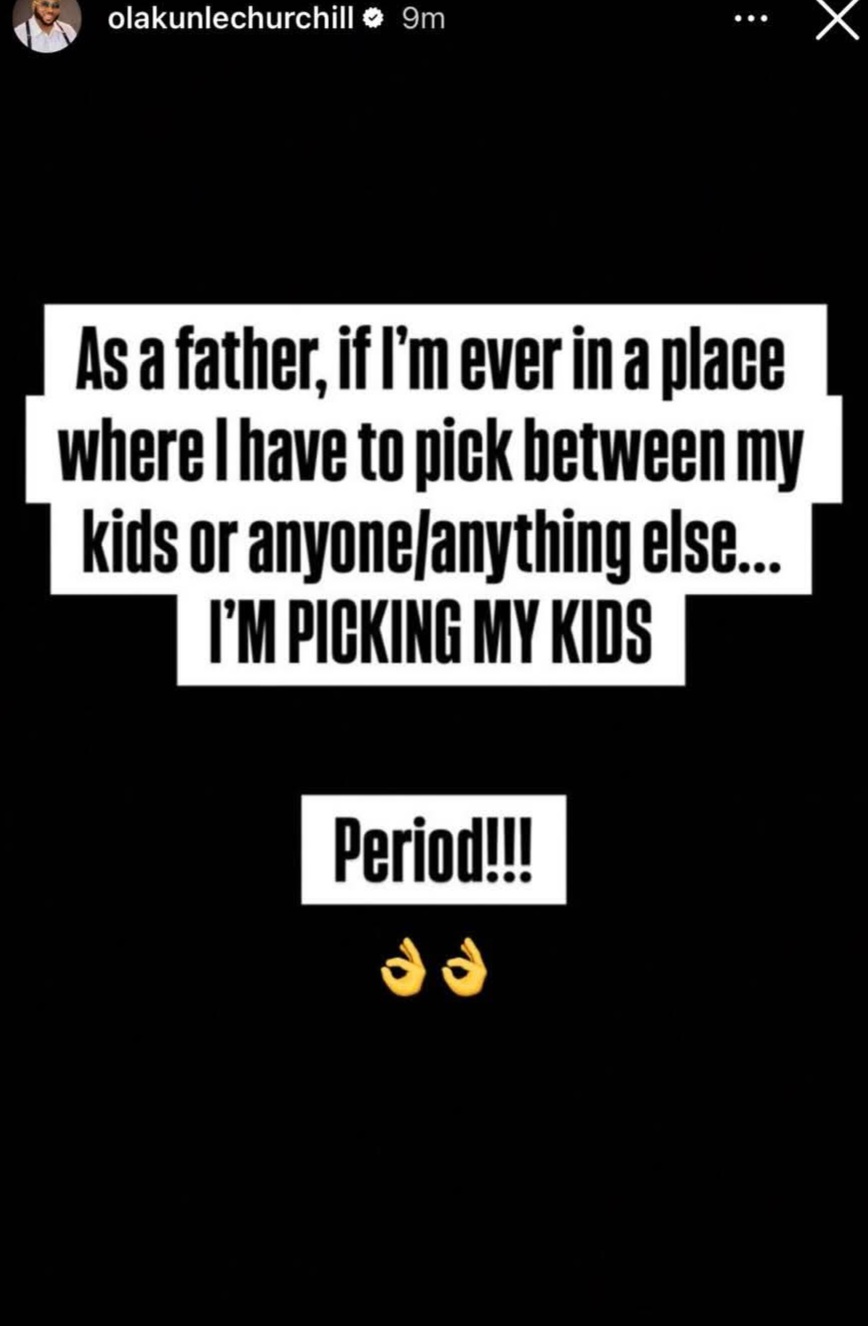 Nigerian businessman Olakunle Churchill has stirred reactions online after making a strong statement about fatherhood amid fresh speculation surrounding his marriage.