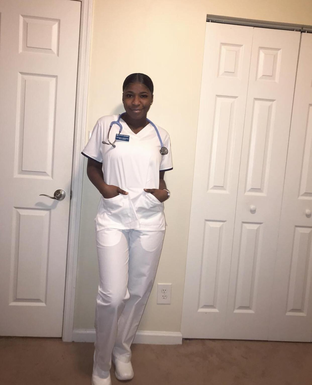 Mc Oluomo’s daughter, Ayinke is about to be a nurse. Ayinke shared photos of herself in a nursing attire as she recently got admitted into a Nursing college in the US.